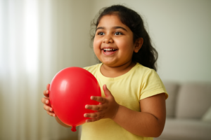 “Saisha’s world is filled with simple joys — balloons, water,...